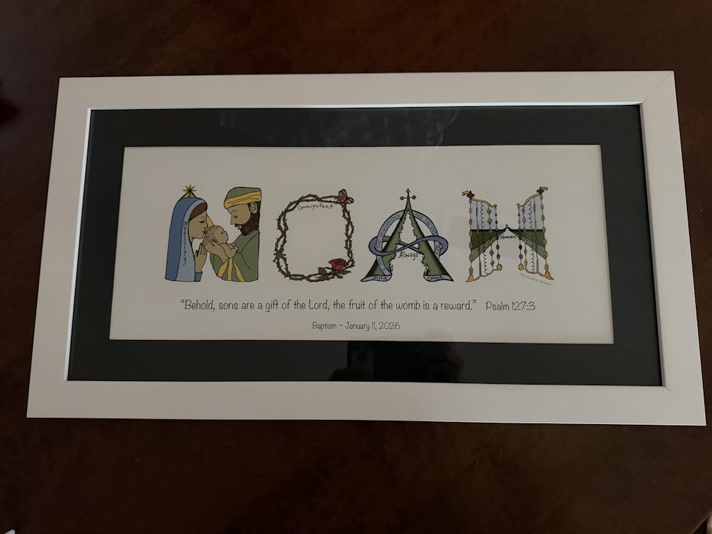 I just received my grandson's personalized name art for his baptism. It is perfect I loved that I could choose the Bible verse. It made it truly special.