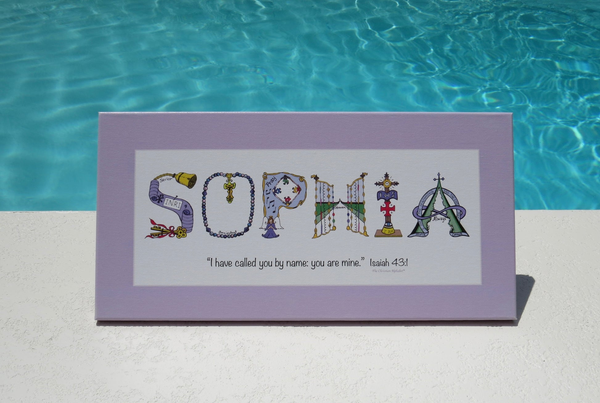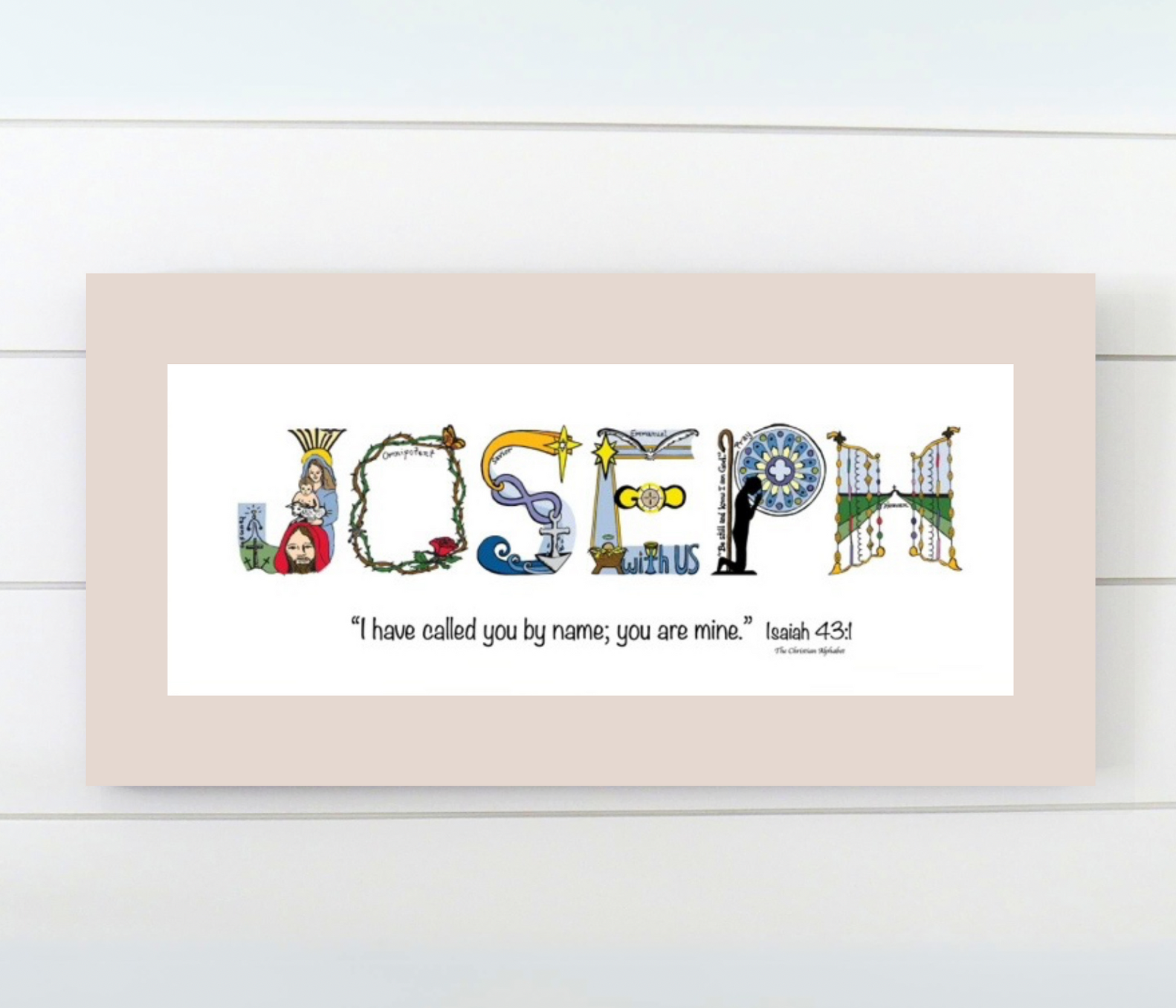 Give a meaningful Christian gift! Get a personalized, memorable artwork from The Christian Alphabet™. It is a 10”x 20" canvas name art print that is ready-to-gift. Made with high-quality materials, it comes ready to hang for a hassle-free display.