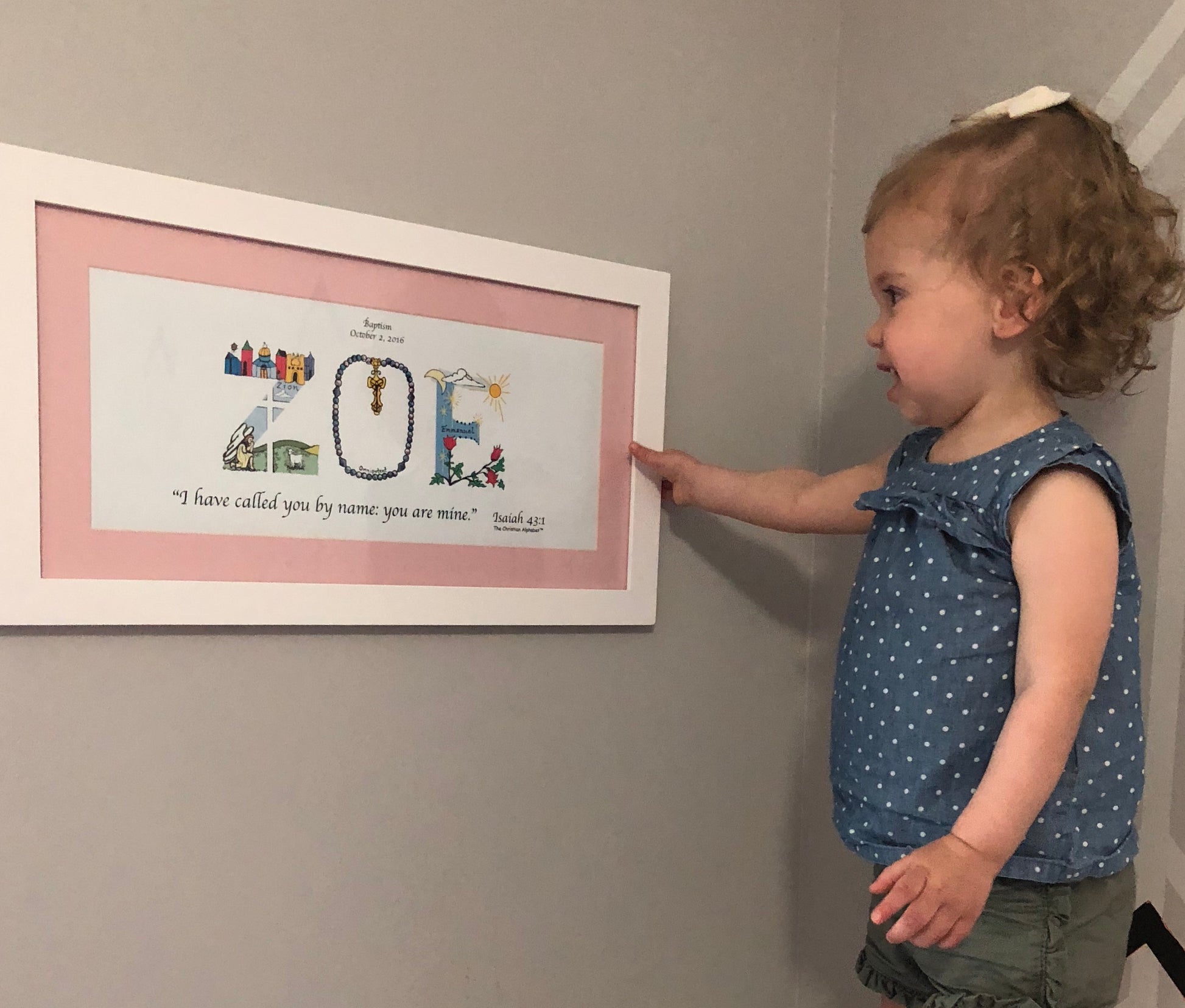 Give a meaningful Christian gift! Get a personalized, memorable artwork from The Christian Alphabet™. It is a 10”x 20" professionally matted print that is ready-to-gift.
