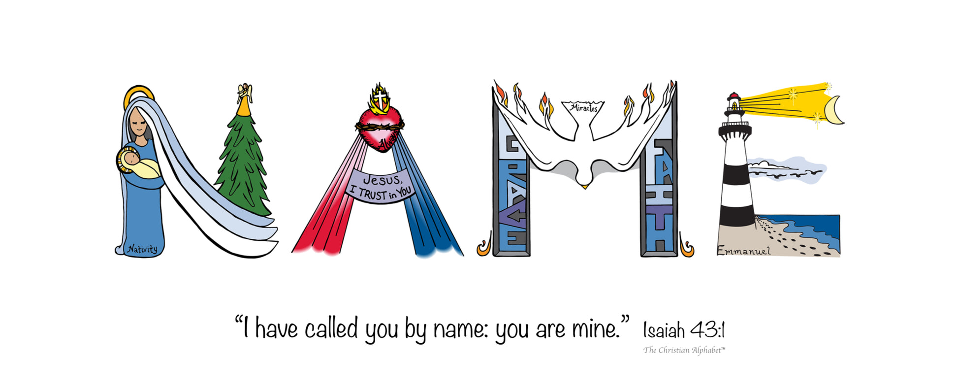 Get a personalized, memorable artwork for girls and boys from The Christian Alphabet™. This will be a PDF file delivered through Etsy conversations. PLEASE READ below for ALL details.